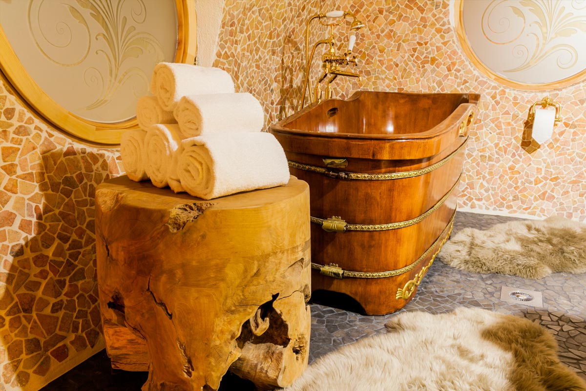 - Bad nach Wunsch: Dusche oder Badewanne, Waschtisch aus Massivholz, Waschmaschine/Waschtrockner, IP-geschützte Beleuchtung.